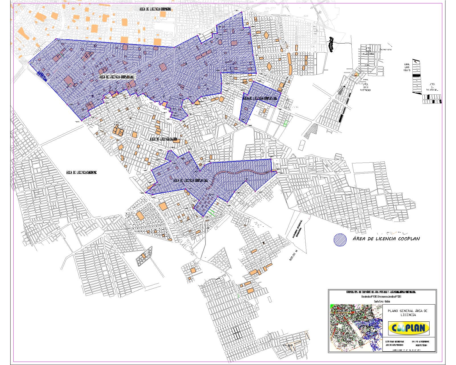 y Alcantarillado Sanitarios del área de la licencia para la explotación y prestación de estos servicios, la misma que abarca una superficie total de 1. 527.41 hectáreas y está ubicada en el sector sud oeste de la ciudad limitada por las Cooperativas “SAGUAPAC”, “COOPAGUAS”y “SAJUBA”, de conformidad a las coordenadas que delimitan la poligonal del área de